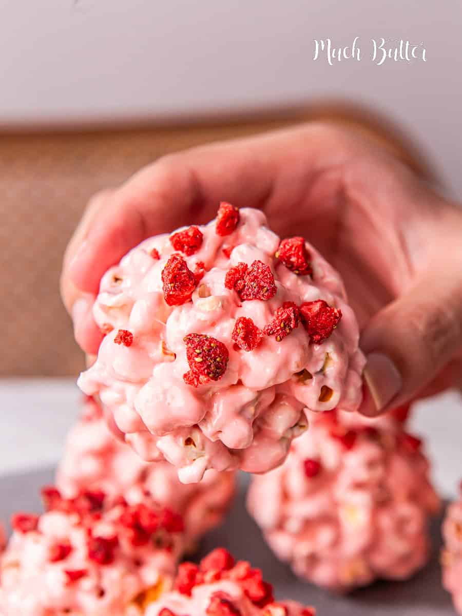 For a touch of nostalgia, we’re bringing back Popcorn Balls! My mom used to make these, but I remember them often being “crack-your-teeth” hard . We fixed that! Our version uses a mixture of marshmallows and butter to ensure they stay soft, chewy, and safe for everyone to eat . We added dried strawberries for a “pinky sweet color” that looks so festive on the table . It’s a super fun project to do with the kids while the beef is roasting.