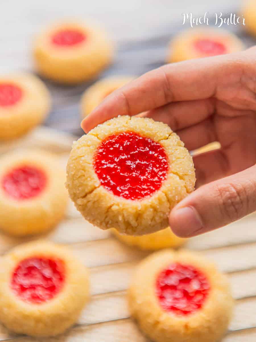 No holiday list is complete without cookies. These Thumbprint Cookies are like little jewels on your dining table. We roll a simple buttery dough in sparkling sugar and fill the center with bright red strawberry jam . They are soft, chewy, and perfect for a “Christmas Cookie Exchange” or just enjoying with your family . They are simple, classic, and visually stunning.