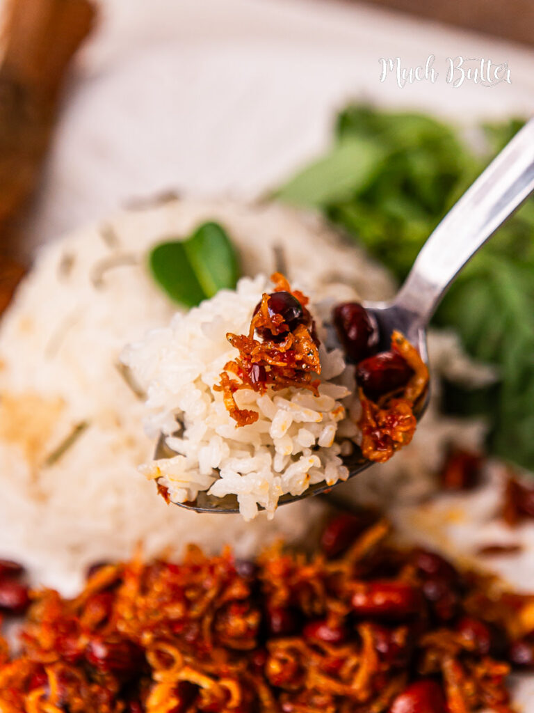 - Sambal Anchovy (Sambal Ikan Teri) – Salty, spicy, and crunchy, this is a classic Indonesian pairing that balances the freshness of the rice. (posting soon) or other sambals such as tomato sambal