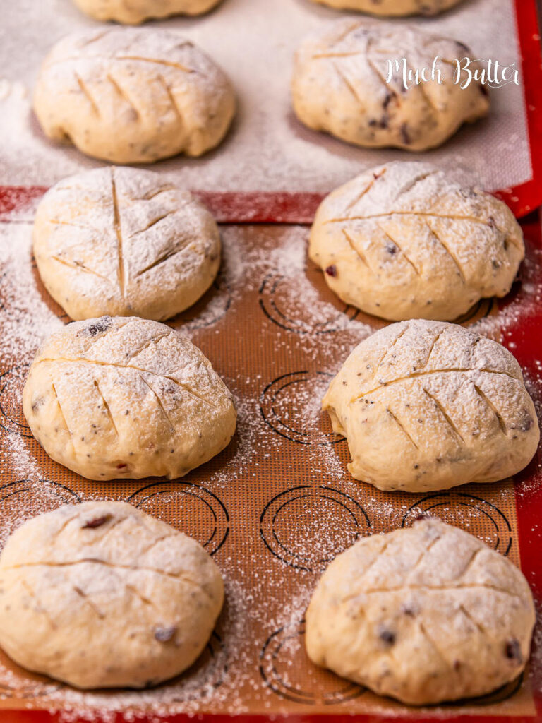 Preheat oven to 180℃. Dust the dough with flour then scoring with a lane and bake for 10-12 minutes.